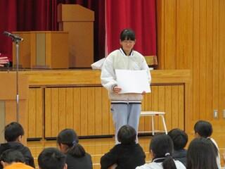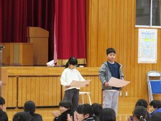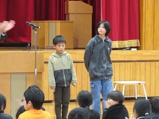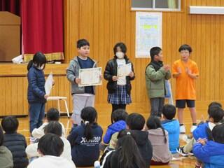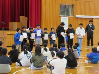 最後に、表彰を行いました。町人権標語、町親子ふれあい標語、町読書感想画コンクール、みまたん絵コンクール、持久走記録会、県文集ともだち掲載と、いろいろなところで活躍しました。また、学校外でも習い事などで頑張っている子がたくさんいます。これからも頑張ってください。