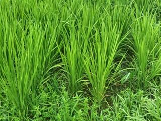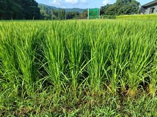 田んぼの稲もすくすく育って、穂が出てきました。もう少しすると、穂先が垂れてくるのではないでしょうか。子どもたちも、成長の2学期になることを祈っています。