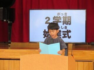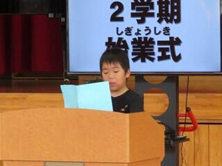 始業式では、作文発表で、1年生と3年生の代表児童が2学期の目標を発表しました。
