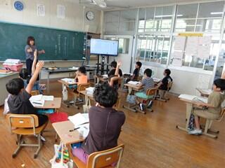 3年生は、国語で詩を味わおうという学習をしていました。詩の題名から分かることなどを考えて、分かったことを発表していました。あえて答えの一部を発表して、友だちにヒントを送る姿もありました。