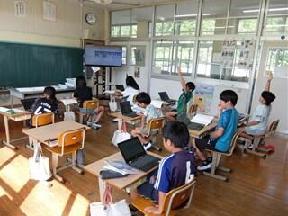 4年生は、新しくなったタブレットPCで、ロイロノートのシンキングツールを活用し、文章の分析をしていました。次の時間は、理科室で星座早見を使って月の満ち欠けの学習をしていました。