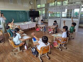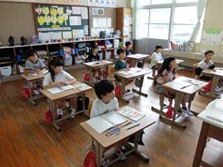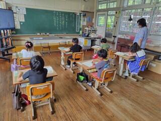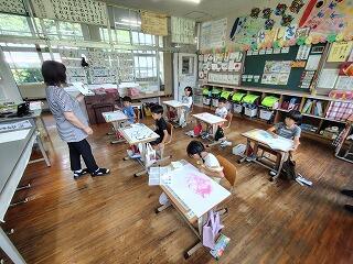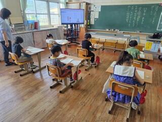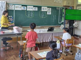 国語科で「は」や「を」を意識して読んだり、書いたりする授業をしていました。1文字1文字を丁寧に書いたり、言葉のまとまりを意識して読んだりすることができるようになってきています。