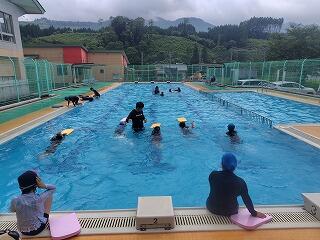 3・4年生は水泳の授業をしていました。先週は、浮くことが中心でしたが、だんだん泳ぐことが中心になってきました。力をぬいて浮くことができるようになった子が、上手に進めるようになっていました。