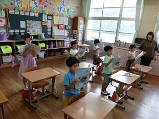 25日も読み聞かせをしていただきました。子ども達の顔を思い浮かべながら本を選んでいただいていることと思います。子ども達も、食い入るように聞き入っていました。