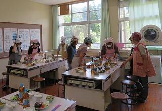 本校の家庭科室で、地域の方による「長田地区いきいき元気塾」が開催されました。家庭科室を使って、6月号の広報みまたで紹介されている料理(スタッフドピーマン、インゲンマメとタマゴの炒めもの、マシュマロヨーグルトのキウイ添え)を作られていました。彩りや栄養バランスもよくとてもおいしそうでした。