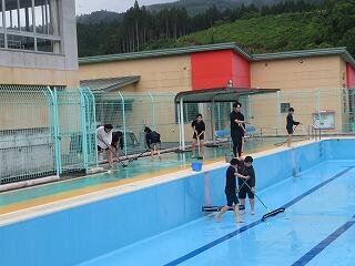 プール掃除を頑張りました