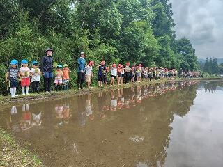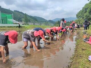子ども達のために実習田を提供いただいた方、事前の準備をしていただいた方、当日の準備やお手伝いをしていただいた方、皆様のおかげで子ども達は良い経験をすることができました。ありがとうございました。今後も成長を見守りながら、収穫・販売までつなげていければと思います。
