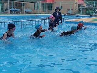 3・4年生は、「浮く・泳ぐ運動」として、水を怖がらずに、楽しみながら浮いたり泳いだりしていました。