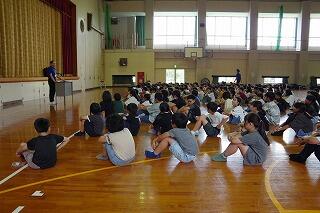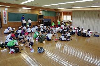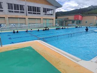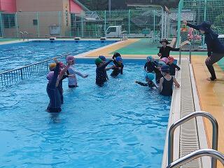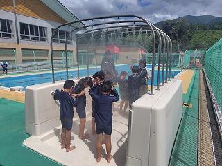 16日(月)に3・4年生が、17日(火)に1・2年生と5・6年生がプール開きを行いました。先週から気温が高くなったので、気持ちよく水の中に入ることができたようです。