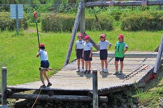 19日は、到着後、入所式とオリエンテーションを行いました。レストランでバイキング昼食を取った後は、晴天の中でフィールドアスレチックを行いました。グループごとに協力しながらポイントをクリアーしていきました。声を掛け合う姿、手を取り合う姿など、協力して頑張っている姿をたくさん見ることができました。