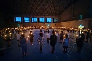 レストランで昼食を取った後は、体育館で退所式を行いました。2日間で学んだ「規律」「協同」「友愛」「奉仕」の精神を、学校や家庭に帰ってから生かすことを期待しています。