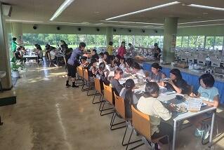 レストランでは、何度もおかわりをする子、苦手なものも少しは食べようと頑張る子など、それぞれのようでした。グループごとに片付けをしましたが、率先して動く子の姿や、テーブルの拭き上げなど、最後まで頑張る子の姿も見られました。
