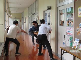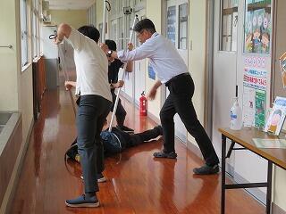 5月19日に、都城警察署より2名来校していただき、不審者対応の避難訓練を行いました。