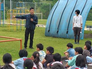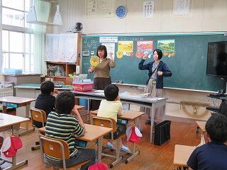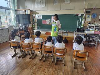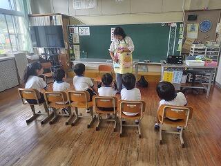 ペープサートを使いながら、バランスよく食べることの大切さについて学習させていただきました。子ども達は元気よく反応しながら学んでいました。