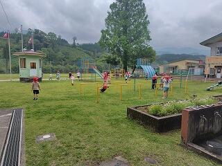 今日は、雨のやみ間に、運動場で楽しそうに遊ぶ子供たちの姿が見られました。