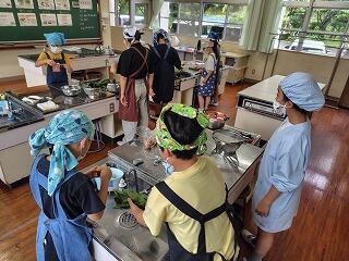 5年生が調理実習をしていました。「青菜のおひたし」と「ゆでいも」を作っていました。慎重に包丁を扱いながら、心を込めて作っていました。試食させてもらいましたが、火の通り具合もよく、大変おいしく出来上がりました。ぜひ、家でもチャレンジしてほしいです。