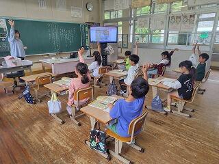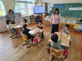 1年生は、算数科のいくつといくつの学習で、問題を出し合って練習していました。じゃんけんで順番を決めて、楽しく学習をしていました。