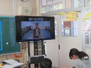 12/5(木)に5年生が高千穂町の上野小学校といっしょに、UMKのオンライン学習「放送局のお仕事」を体験しました。長田小と上野小がお互いに学校紹介をした後、放送局のお仕事についてのVTRを見たり、UMKアナウンサー「オカファーエニス豪」さんへ質問したりしました。5年生はオカファーアナウンサーの話を熱心に聞いて、たくさんメモを取りました。最後に手を振ってお別れしました。どの児童からも「とても楽しかった!!」という声が聞かれました。