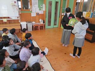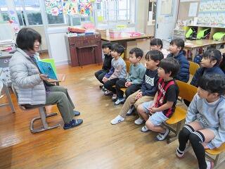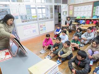 12/11(水)に2学期最後の読み聞かせがありました。1年生は「てんてんきょうだい」「サンタはどうやってえんとつをおりるの?」2年生は「はじめてのクリスマス」「いちにちだじゃれ」「おまかせツアー」3・4年生は「しりとりのだいすきなおうさま」「となりのたぬき」5・6年生は「たいのおかしら」を読み聞かせしてもらいました。すっかり恒例の朝の活動になりました。読み聞かせスタッフの皆様、ご多忙な中ありがとうございます。3学期もよろしくお願いします。