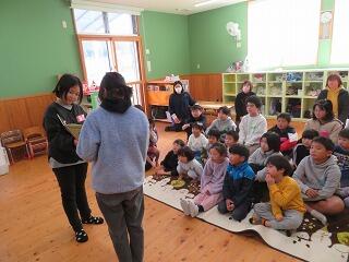 12/17(火)に5年生が長田小に隣接するひまわり保育園長田分園へ出かけて、園児と交流しました。はじめに園児へ読み聞かせをしました。その後に折り紙を使ってキツネやどんぐりの折り方を教えました。続いて本校の体育館へ移動して、いっしょに「だるまさんが転んだ」を楽しみました。園児から「楽しかった!また遊びたい!!」という声があがりました。5年生は、園児といっしょに楽しい時間を過ごすことで、いろいろな人へ優しく接することや思いやりの心が大切だということを再認識できたようです。