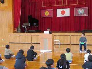 1/7(火)の1校時に3学期の始業式をしました。初めに4年生と6年生の代表児童が3学期の目標について発表しました。4年生は「わり算の筆算」「片付け」「鉄棒」、6年生は「漢字」「そろばん」「体操」についてそれぞれがんばるという発表をしました。校長先生からは、命を守ること、家族の一員としてできることに取り組んだ冬休みになれたかを質問された後、こつこつと練習したり、努力したりすることのよさなどについて話をしていただきました。長田っ子全員、新年を迎えて、次の学年へ向けてしっかりと成長する姿を見せてくれることでしょう。