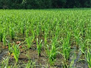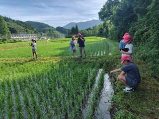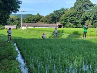 田んぼの稲もすくすく育って、穂が出てきました。もう少しすると、穂先が垂れてくるのではないでしょうか。子どもたちも、成長の2学期になることを祈っています。
