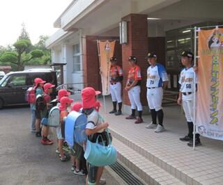 2/18(火)の朝に、今年も宮崎の野球チーム「宮崎サンシャインズ」の選手が来校し、朝のあいさつ運動をしてくれました。選手の皆様から元気のよいあいさつをしていただき、児童も喜んでいました。お忙しい中のあいさつ運動、まことにありがとうございます。是非、来年もいらしてください!!