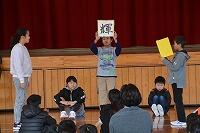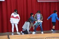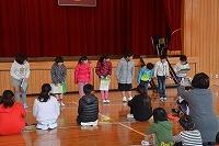 最初に体育館で、6年生を送る集会が行われ、各学年、歌やクイズ、