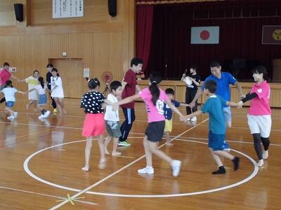 た。各ポイントでは、なわとびやジェスチャーゲームなどをして点数