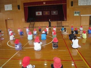 都城ドライビングスクールの方に来ていただき、横断歩道の渡り方について学びました。また、人に見立てた段ボールが車とぶつかる様子を間近で見て、交通事故の怖さも見て学ぶことができました。最後には、代表児童が、「気を付けて毎日を過ごしていきます。」と、お礼の言葉を述べることができました。