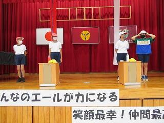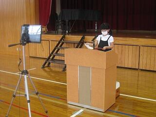 作文発表では、代表児童が2学期に頑張りたいことをしっかりと発表することができました。校長先生から2学期の行事のことやコロナウイルスのことなど話があり、子どもたちも静かに聞くことができていました。