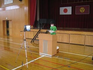 3名の代表児童による作文発表では、それぞれの子どもたちが2学期に頑張ったことを発表してくれました。校長先生からは、命を大切に、宿題にも一生懸命取り組んで、楽しい冬休みを過ごしてくださいと話がありました。きまりを守って、楽しい冬休みを過ごしてほしいと思います。