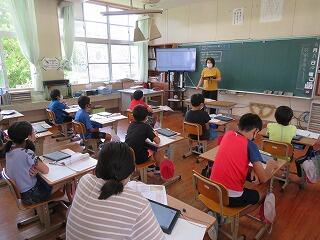 これまで長田小で子どもたちと一緒に英語の学習をしていたALTの先生が、この夏アメリカに戻られることになりました。子どもたちは先生から正しい英語の発音や英語の学習の楽しさなど、多くのことを学びました。