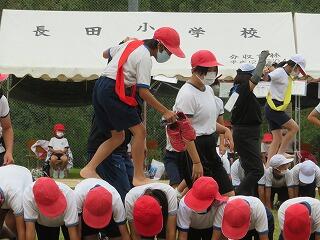 9月26日(火)の第4回運動会全体練習の翌日、9月27日(水)に運動会総予行練習を行いました。棒踊りやダンス、団技、徒走、全校リレーに取り組みました。園児も遊戯やかけっこをがんばりました。いよいよ合同運動会が近づいてきました。児童は本番へ向けて「長田魂」でがんばります!