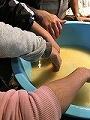1年生が生活科の授業「冬に遊ぼう」で絵の具を混ぜた水