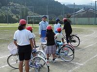 今日は交通教室が行われました。都城警察署と交通指導員の方々に自転車の乗り方を中心に教えていただきました。子供たちは、真剣に話を聞き、実技もしっかり行いました。