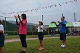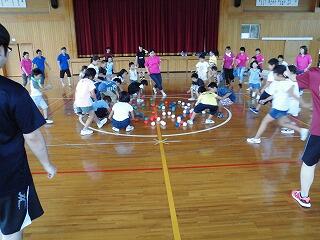 最初に南九州大学の学生さんの指導のもと親子で体操レクリエーション