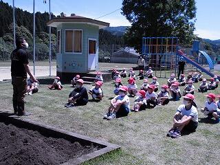 植え付けが終わった後は、縦割りの班で、いも畑のお世話について話し合いました。