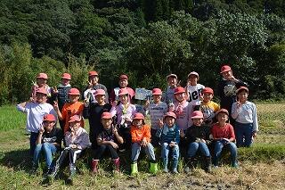 6月に田植えをした稲もすくすくと育ち、10月9日(水)に全校児童で稲刈りを行いました。天候にも恵まれ快晴の下、楽しく稲を刈りました。上級生はさすがに手際よく作業し、下級生は慣れない手つきながらも一生懸命頑張りました。今年も昨年に引き続き豊作でした。