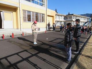 今回は理科室が出火元として、避難を行いました。「おかしも」の約束やハンカチで口を押さえながら姿勢を低くして避難するなど、真剣に訓練に臨むことができました。