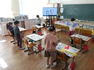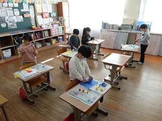 1年生は図画工作科で「くしゃくしゃ だいへんしん」の学習をしていました。くしゃくしゃにした紙の形や色を組み合わせたり、できた紙の形から作りたいものを考えたりしながら、楽しく制作活動をしていました。