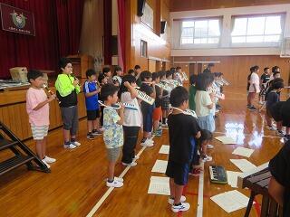 10/18(金)に全校児童で音楽の学習をしました。今年もいよいよ10月31日(木)に開催予定の「三股町音楽大会」へ向けて練習が始まりました。今年は「ハイサイ!!沖縄」を演奏したり、合唱したりします。本番へ向けて今年も頑張ります!!