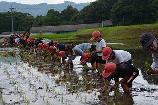 14日が雨のため、17日(月)に延期して実施しました。まず初めにPTA会長さんに田植えの仕方を教わり、田んぼに移動しました。天候にも恵まれ2枚の田んぼを児童と保護者、先生も泥んこになりながら楽しく田植え体験ができました。秋には稲刈りが待っています。それまで稲の成長を楽しみに見守りたいです。