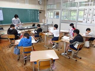 5年生は国語科で「名前を使って、自己しょうかい」の学習をしていました。行の始めの文字をつなげると自分の名前になるように、自分を紹介する文章を考えていました。