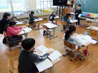 3年生は、先生がお休みですので、教頭先生と国語の学習をしていました。漢字の広場を使って、動物園の様子を文にしたり、友だちにクイズを出したりしていました。