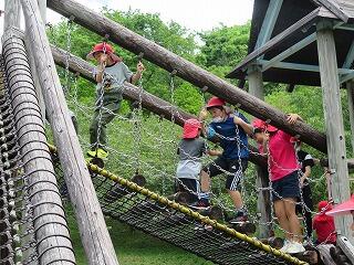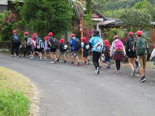 その後は椎八重公園まで歩いて向かいました。天候は曇りで、心地よい中ではありましたが、やはり距離があるので、6年生は1年生をサポートしつつ、全校のみんなへ向けて、「がんばるぞ!」と掛け声をかけながら向かいました。最後まで全校みんなでがんばって歩きました。