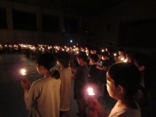 6/27(木)から28(金)にかけて、5年生が長田小・宮村小・梶山小の三校合同で宿泊学習に出かけました。場所は、青島青少年自然の家です。1日目はあいにくの雨だったため、室内オリンピックを体験しました。夕食の後、キャンドルファイヤーを楽しみました。2日目は天気が回復したので、フィールドアスレチックに取り組むことができました。他の学校の友達と協力して活動する楽しさや喜びを体験することができました。