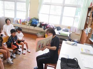 7/10(水)の朝の時間に、5回目の読み聞かせをしていただきました。今回は1年生へは「あかい さんりんしゃ」「かぶとむしは どこ?」、2年生へは「わゴムはどのくらいのびるのかしら?」「ええところ」、3・4年生へは「いいわけサウルス」「まっくろ まっくら」「サク もぐ ごくん」、5・6年生へは「勇気の花がひらくとき」「チリンのすず」を読み聞かせしていただきました。どの児童も食い入るように読み聞かせを聞いていました。今回で1学期の読み聞かせは最後になりました。また2学期からの読み聞かせをしていただけるとのこと、まことにありがとうございます。