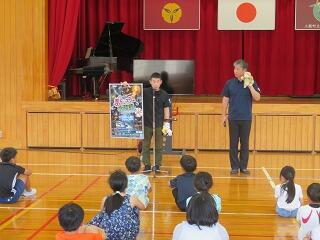7/22(月)に1学期の終業式を実施しました。2年生と4年生の代表児童が、1学期にがんばったことを発表しました。校長先生からは「一人一人が大切」であることについて話をしていただきました。その後に宮崎県総合博物館の方に来ていただいて、今年の夏に博物館で実施される「毒モンスター水族館」の展示物や観察できる珍しい生き物たちなどについて楽しく紹介していただきました。どの児童もすてきな夏休みを過ごすことでしょう。2学期にみんな元気に登校してきて、いろいろな体験を話してくれるのが楽しみです。
