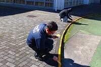 また、2年生は、サッカーボールを使って、シュートする側と守る側に分かれて、どちらがたくさん得点を取れるか、競い合っていました。